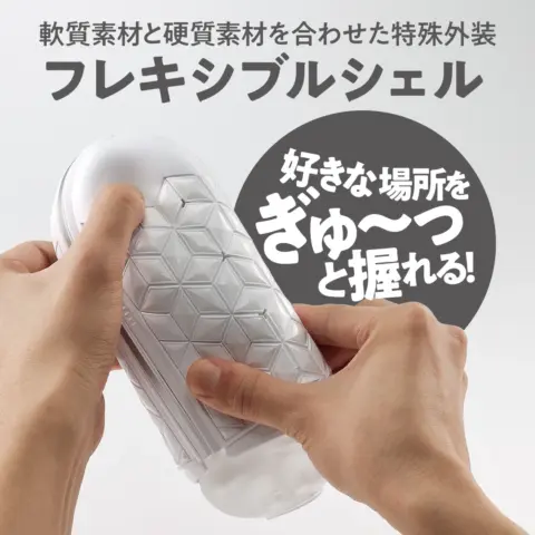 新技術の軟質素材と硬質素材を合わせた特殊マテリアルで、本体シェルを形成。自在に動くフレキシブルシェルにより、全方向からの加圧刺激が可能に。押さえる場所や力のかけ方により、変幻自在のメリハリ刺激を味わえます。
