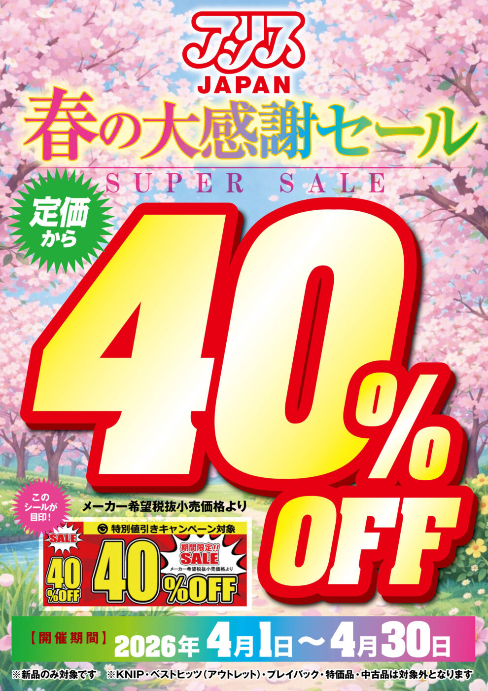 いよいよアリスJAPAN40%OFFキャンペーンが始まります!