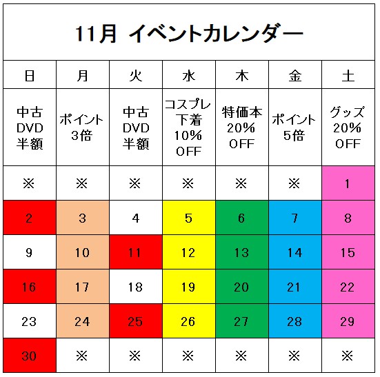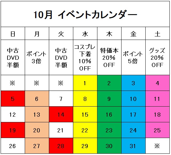 山口宇部店 10・11月イベントカレンダー
